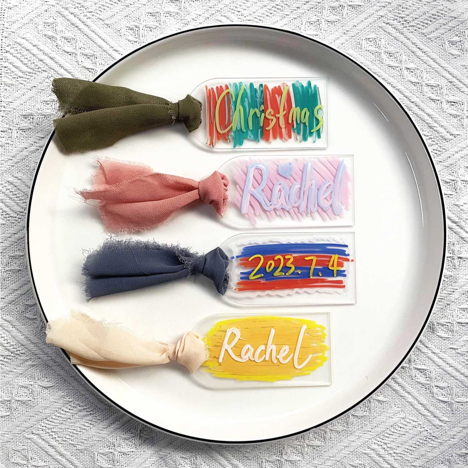 Acrylic Wedding Place Card Guest Name Tag Silk Ribbon Hanging Arch Blank Wedding Decoration DIY Seating Cards